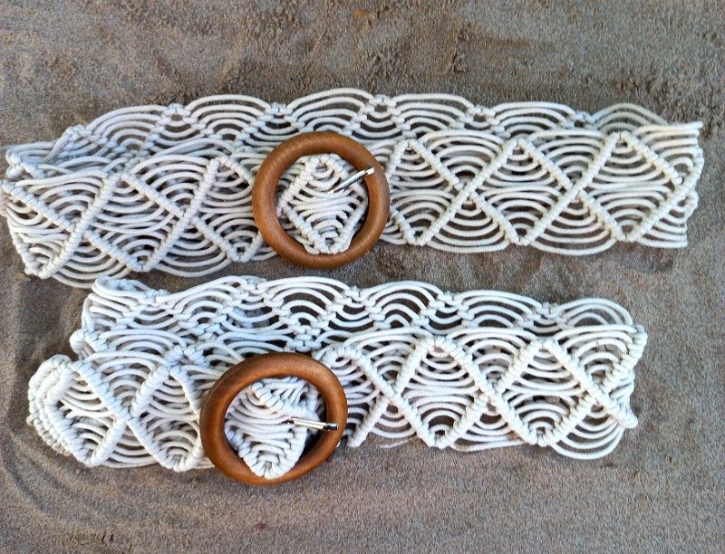 Cinturón elástico de macramé con cierre de madera.
