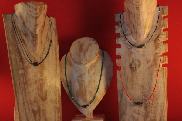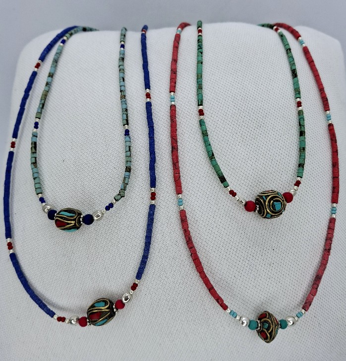 Collar de Alpaca con abalorios de Turquesa, Lapislazuli, Coral o Malaquita .