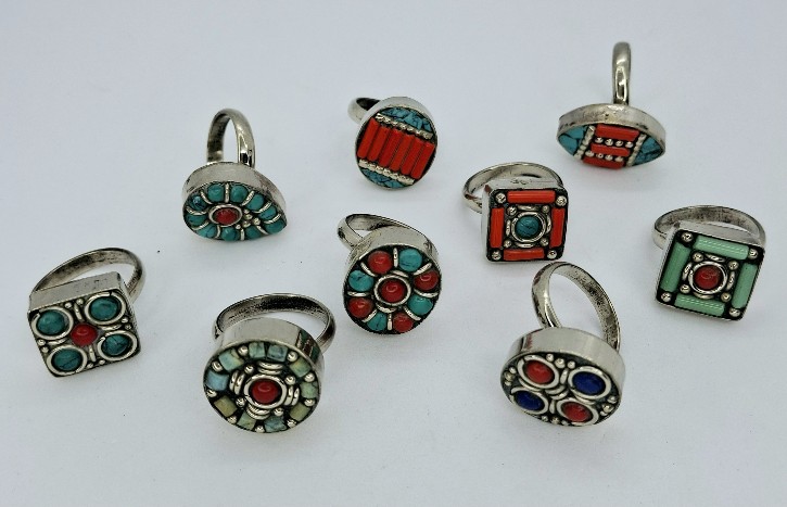 Anillo de metal con piedras semi-preciosas.