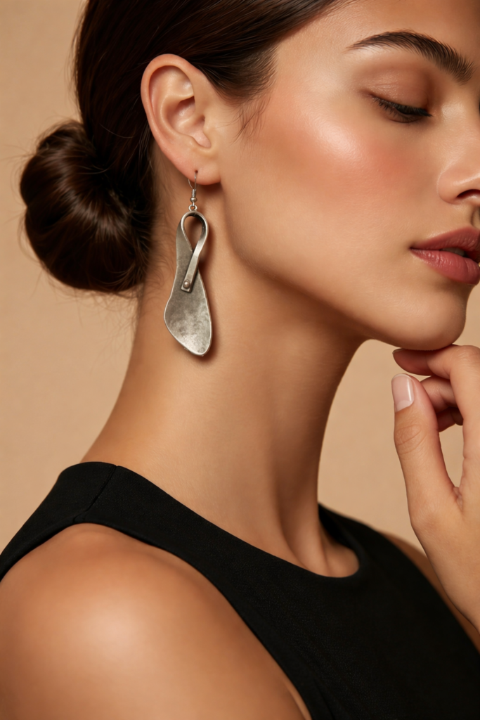 Elegantes pendientes elaborados en ZAMAC, una resistente aleación de zinc, magnesio, aluminio y cobre, y posteriormente bañado en plata para lograr un acabado brillante y sofisticado.